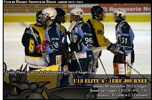 A voir l’énergie dépensée pour s’accaparer le petit morceau de caoutchouc à peine jeté par l’arbitre de la rencontre entre Rouen et Angers, nul doute que les longues semaines d’inactivité glacée de l’été auront mis en émoi les hormones des séraphins à l’occasion de cette première journée du championnat Cadet Elite A. C’est ainsi que sur la première présence de la rencontre, en bon capitaine de la formation au Dragon Téo Laurent donnait l’impulsion en sortant les épaules pour démontrer aux Ducs, si besoin était nécessaire, toutes les velléités de victoire rouennaise. Pour autant, en dépit d’une évidente envie de bien faire, les rouennais confondaient vitesse et précipitation rendant le jeu un soupçon brouillon. Pire pour les Normands, une série de minutes de cachot (02’52, 08’30, 09’06), les obligeaient à travailler fortement leur jeu en infériorité numérique. Des trois tentatives ligériennes, il ne restera pas à grand-chose à la mi-tiers, Quentin Papillon dans les filets rouennais se montrant rassurant face à une défense solidaire. Si les vendanges sont bien une spécialité viticole de l’Anjou, les Dragons, moins œnologues, n’auront besoin que d’une tentative en supériorité numérique pour ouvrir le score : un missile de la bleue de Théo Lanvers difficilement repoussé par l’arrière garde angevine permettait à Benoît Valier, plein d’opportunisme, d’ouvrir au rebond le score (0-1 à 13’44) Rassurés par cette ouverture du score, les Hauts Normands prenaient leur quartier au sein de la défense de la patinoire du Haras. Maxime Dordet seul face à Julien Gaubert (18’44) manquait de réalisme pour le 2-0 tandis que Valentin Moreau sur la fin de la première période aurait pu profiter d’une parfaite passe break si son collègue jaune et noir n’avait pas été pris d’une cécité fulgurante sur l’action. Quoiqu’il en soit au retour du vestiaire à la fin de la première période, les Dragons pouvaient se montrer satisfait de mener au score face à des Ducs, certes, sur la réserve mais toujours prompts à donner du fil à retordre à un Dragon en mode « rodage »