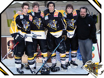 Pour les poussins : en bas de gauche à droite Erwan Gourre et Matus Babka. Deuxième rang : Antonin Germond, Pierre Himber, Nicolas Plaquevent, Yoan Salve |