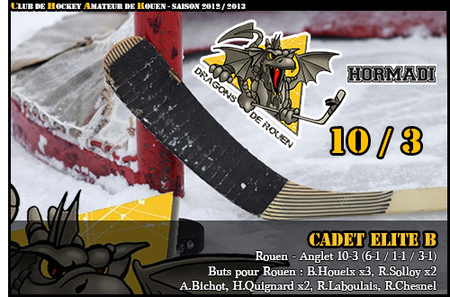 Une fort probable victoire rouennaise en terre basque d'autant plus flagrante que dès l'entame de l'ultime période, Ronan Chesnel profitait d'un jeu en désavantage numérique pour y aller de son but (41'58) A chaque début de période, les jeunes Dragons auront marqué très tôt laissant les locaux plongés dans leurs doutes. Une fin de match quasiment en roue libre pour les deux équipes, Benoît Idiart (47'06) réduisant le score pour Anglet avant de trouver comme contradicteur Romain Solloy pour le 9-3 (51'39) C'est finalement Hugo Quignard qui aura le dernier mot dans cette rencontre. Alimenté conjointement par Pierrick Gourre et l'inévitable sur cette rencontre Brieuc Houeix, l'attaquant jaune et noir portait l'estocade finale avec un dixième et dernier but synonyme de victoire 10-3 des Dragons face à Anglet.