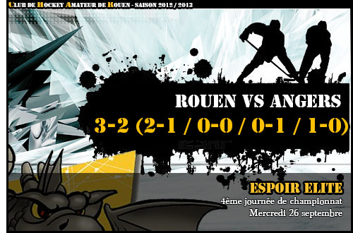 Vainqueurs à domicile dimanche dernier face à Villard de Lans (lire par ailleurs), les Espoirs Rouennais avaient pour adversité leurs homologues d'Angers à l'occasion de la 4ème journée de championnat. Bien que titulaires d'une seule victoire (8-1 face à Reims) pour deux défaites (Amiens 2-6 et Grenoble), les joueurs de François Ferrari restaient sur une belle résistance face au champion de France en titre grenoblois avec une courte défaite à domicile 4 buts à 2.