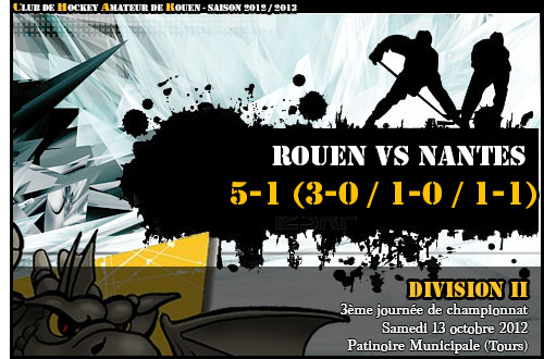 Sans démériter mais face à une équipe nantaise un cran au dessus, les Dragons s'inclinent et lâchent des points à domicile. Avec un calendrier difficile à négocier (victoire chez le leader Vanoise 6-2, défaite à Tours, 2ème et défaite face à Nantes, 3ème en quatre journée), les Rouennais avec une victoire pour trois défaites occupent la huitième place du classement de la poule. Une huitième place qu'ils auront l'occasion de délaisser le week-end prochain avec un déplacement en Alsace chez l'équipe réserve de Strasbourg, actuellement positionnée au classement juste devant les Dragons.