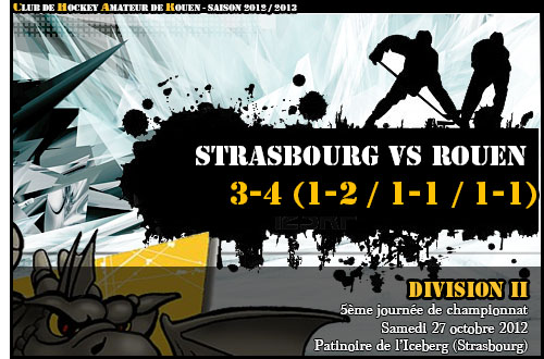 Suite à une défaite logique concédée face à Nantes à domicile, la Division 2 de Rouen en déplacement en Alsace aura ramené deux précieux points de Strasbourg en s'imposant 4 buts à 3 sur la patinoire de l'Iceberg.
