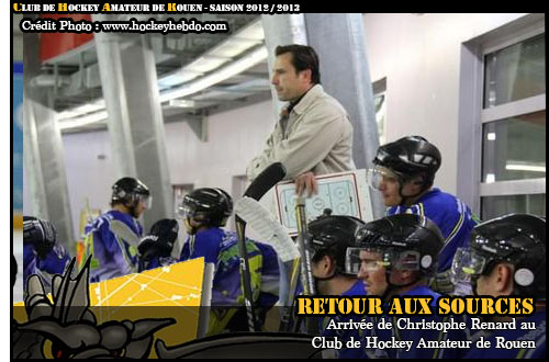 Pendant quatre saisons, Christophe Renard conciliera carrière de joueur au sein du Rouen Hockey Club puis Rouen Hockey Elite 76 et vocation d'entraîneur au sein du hockey mineur haut normand. Parmi les pionniers à vivre l'éclosion du Club de Hockey Amateur de Rouen en janvier 1997, le désormais ancien gardien retrouvera à l'orée de la saison 2013-2014 le club cher à son cœur. Après une reconversion professionnelle réussie pendant plusieurs années au sortir de sa carrière de joueur, c'est à Chalons en Champagne en tant que directeur sportif des Gaulois qu'il retrouvera le doux parfum de la glace et le bruit des palets qui claquent. Toujours proche du club haut normand, Christophe Renard viendra rejoindre l'équipe du Club de Hockey Amateur de Rouen pour la prochaine saison. L'ensemble du Club de Hockey Amateur de Rouen est heureux de souhaiter la bienvenue à Christophe sur les bords de Seine.