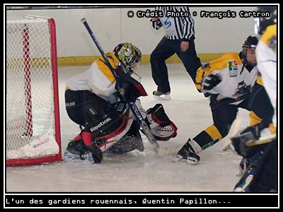 C'est en Basse-Normandie à Caen que les Dragons de Rouen Minimes auront l'opportunité de disputer leur quart de finale du championnat de France avec comme objectif clair et limpide de composter l'un des deux billets pour la demi-finale disputée à la patinoire de l'Ile Lacroix. Face à Angers, Anglet et Caen, les Hauts Normands ne manqueront pas leur rendez-vous en décrochant trois succès importants pour la bonne humeur. Si pour un Dragon, le quart de finale n'est qu'une étape nécessaire avant de satisfaire à des ambitions plus grandes, il n'en reste pas moins que ce passage obligé peut s'avérer piégeux d'autant plus lorsque l'on débute le tournoi face à l'équipe recevante. Face aux Drakkars de Caen, les jeunes Dragons pour la première journée ne se feront pas surprendre et assureront l'essentiel en s'imposant 7-2 face à des bas normands, certes volontaires mais affichant quelques limites fâcheuses dans l'optique d'une qualification. Etrillés par Angers 10-4 lors de la première journée, les Basques d'Anglet se dressaient sur le chemin des rouennais pour la journée médiane du tournoi à 4. La encore pour les Hauts Normands, à l'instar de la partie jouée la veille face à Caen, le suspense ne sera que peu présent. En disposant aisément des joueurs du sud-ouest 10-2, les Rouennais en tête du classement voyait se profiler un ultime duel face à Angers, titulaire de deux victoires également, pour le gain de la première place. Tandis qu'Anglet aux prix d'une victoire sur Caen 8-2 décrochera la troisième place du tournoi, les Rouennais souffriront face aux Ducs. Si au final la victoire sourira aux Dragons et sera au rendez-vous, le 6-5 annoncé au tableau d'affichage laissait les Rouennais sur leur faim avec quelques doutes bien présents dans leur tête avant d'attaquer la suite des aventures (résumé)