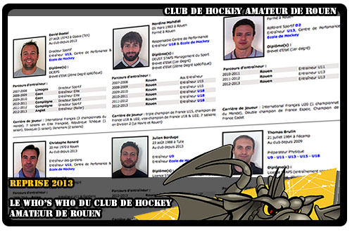 Qui fait quoi dans la casa ? C'est ce que le lien ci-dessous vous propose avec le « Who's Who » du club de Hockey Amateur de Rouen pour vous familiariser avec les fonctions et les parcours de chacun : cliquez ici