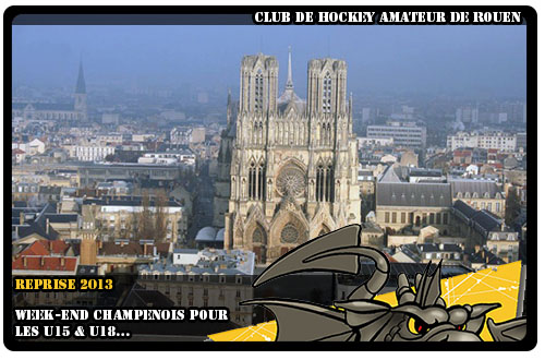 La Champagne à sa Cathédrale à Reims, son Dom Perignon à Epernay, ses « Quatre Lacs » dans la région de Langres et plein d'autres succulentes curiosités sans oublier pour un temps ses Dragons avec ce week-end consacré à l'expédition rouennaise des minimes et cadets à Reims pour les premiers matchs amicaux de la saison. En effet, après plusieurs semaines sans palets entrechoqués, sans mitaine décochée sur un lancer de la bleue, les premiers matchs de la saison se dérouleront ce week-end avec les Cadets rouennais pour l'ouverture du bal ce vendredi à la patinoire de Reims.