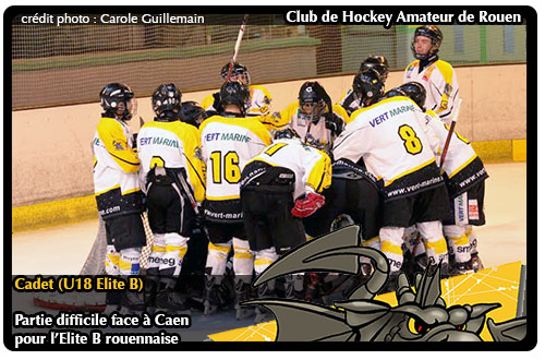 6ème place pour Caen, 8ème pour Rouen 2 avec un match en moins, les deux équipes U18 Elite B s'affrontant sur l'Ile Lacroix pour la quatrième journée du championnat au coude à coude au classement avaient l'occasion de mettre un peu de distance sur un opposant direct. Un derby de la Normandie qui débutait à l'avantage des Bas Normands sur la banquise jaune ou noire avec plusieurs occasions saisissantes qui mettaient en exergue la solidité du portier rouennais Erwan Jaouen.