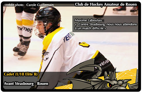 Avec un début de saison sur la pointe des patins avec une victoire face à Viry en quatre matchs, les Dragons de l'Elite B iront en Alsace en toute modestie à l'image de leur capitaine Maxime Laboulais conscient des difficultés qui attendent l'équipe rouennaise à la patinoire de l'Iceberg de Strasbourg