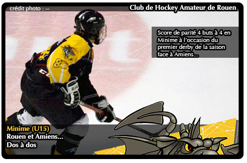 Dans le sommet du championnat U15 entre Rouen et Amiens, les deux équipes repartiront chacun dans leur coin dos à dos, incapables de se départager, séparés sur le score de 4 buts à 4 au terme d'une rencontre forte en rebondissements.