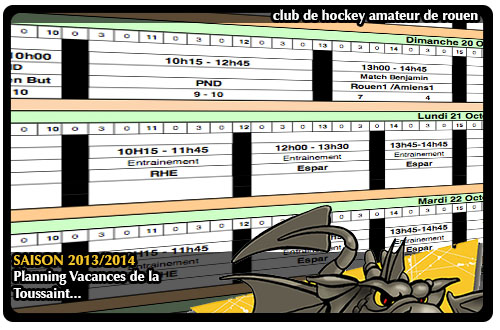 Le planning général des vacances de la Toussaint (samedi 19 octobre 2013 au dimanche 03 novembre 2013) est disponible en cliquant ici