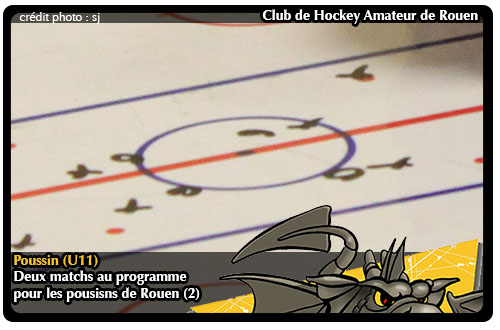 Une fois n'est pas coutume, petit week-end pour les Poussins Rouennais avec seulement deux matchs au programme, tous deux pour Rouen (2), l'un en interconférence samedi face à Courbevoie à l'Ile Lacroix, l'autre au Havre le dimanche en championnat.