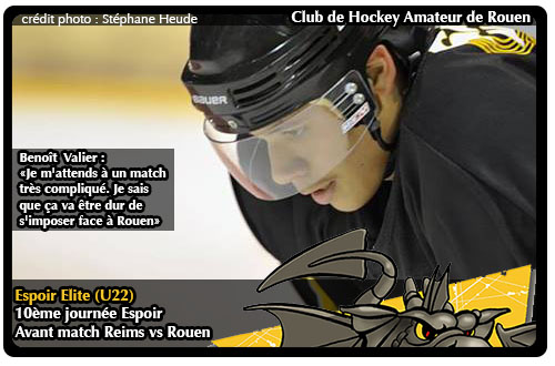 Il est vrai que depuis le début de saison, les Phenix de Reims semble souffrir dans leurs résultats. Balayés d'entrée lors de la première journée par Rouen (défaite 8-3), les champenois n'auront remporté que trois matchs (Gap, Grenoble, Angers) décrochés au classement à la 6ème place à un point de Gap et devant le couple des infortunés Angers et Villard. Pire pour les marnais, leur dernière rencontre de championnat face à Hockey 74 aura été un long chemin de souffrance avec une cataclysmique défaite 16 buts à 1. Un lourd revers rapidement balayé de la main pour les rémois et Benoît Valier qui préfère se focaliser sur la rencontre à venir face à Rouen « Nous avons vraiment mal joué mais nous sommes passés très vite à autre chose, je préfère que l'on pense à ce qui est devant nous plutôt que de nous attarder sur le passé »