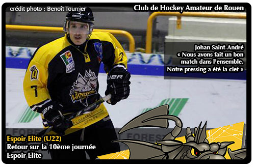 De fait, à vingt minutes de la fin avec cinq buts d'avance, les affaires étaient plus simples pour les seinomarins. Même si coup sur coup les Phenix frappaient par deux fois, Benoît Valier se rappelant au bon souvenir de ses anciens coéquipiers en double avantage numérique (43'50) imité dans la foulée par le saint-pierrais Tristan Girardin (44'07) le mal était fait dans le camp des joueurs joueurs d'Ivan Bock. En rajoutant deux buts, l'un pour Antoine Mony (41'20), l'autre pour Jérémy Delbaere (57'43), les Rouennais bouclaient leur affaire sur le score de 7 buts à 2 en tout sérénité à l'image du premier buteur de l'après-midi champenoise des Dragons : Johan Saint-André « Nous avons fait un bon match dans l'ensemble. Notre pressing a été la clef et nous a permis de récupérer beaucoup de palets en zone offensive pour attaquer rapidement. On a fait des bonnes séquences de jeu qui nous ont mis en confiance notamment au deuxième tiers avec des joueurs qui se trouvaient bien, donnant beaucoup d'occasions de notre coté. A nous par contre, d'être plus disciplinés sur les prochains matchs au niveau des pénalités si on ne veut pas se mettre en difficulté tout seul. « commente l'Orléanais, satisfait alors que le statu quo s'impose au sommet du classement.