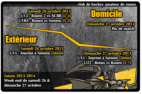 Week-end consacré aux grandes catégories du Club de Hockey Amateur de Rouen. Au programme : les Benjamins vs ACBB en amical, la très belle victoire des Cadets Elite A face à Amiens à domicile, le tournoi d'Amiens pour les Minimes Rouennais et une troisième place intéressante et la solide victoire des Espoirs à Reims.