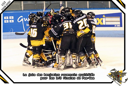 C'est en demi-finale que l'aventure des benjamins rouennais s'arrêtera dans le tournoi international Pee-Wee. En effet, après une formidable semaine ponctuée de jolies performances, les Dragons rouennais auront du s'incliner en demi-finale face Quebec Montcalm. Alors que plus tôt dans la journée, les rouennais avaient réussi à se jouer de Montagny 3 buts à 0, cette fois face à Quebec Montcalm, l'effet de surprise de ne suffira pas pour surprendre une équipe de Quebec Moncalm solide.
