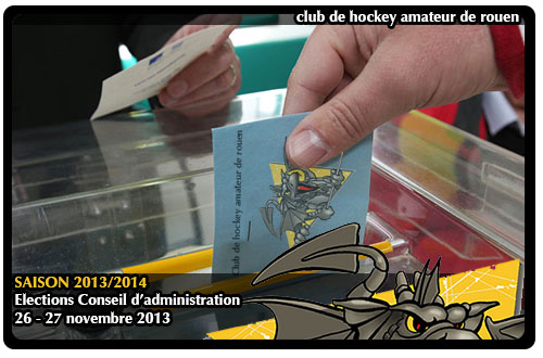 Le mardi 26 et le mercredi 27 novembre 2013 se dérouleront les élections pour le renouvellement des membres du Conseil d'Administration du Club de Hockey Amateur de Rouen.