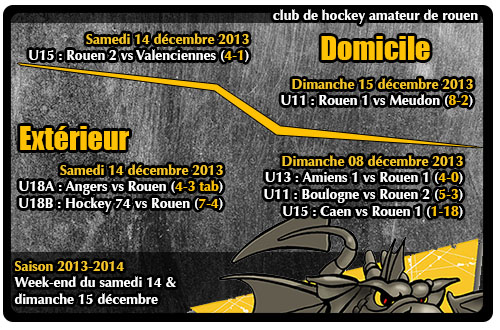 Aussi excitants que l'intégrale de Proust traduite en Hongrois, aussi enthousiasmants qu'un film de David Lynch, les résultats du week-end du Dragon. Avec au programme de la défaite, de la grisaille, encore de la défaite et un rayon de soleil celui des minimes et des poussins, seuls vainqueurs de ce week-end décevant pour les Dragons du Club de Hockey Amateur de Rouen. "On apprend peu par la victoire, mais beaucoup par la défaite" Proverbe japonnais.