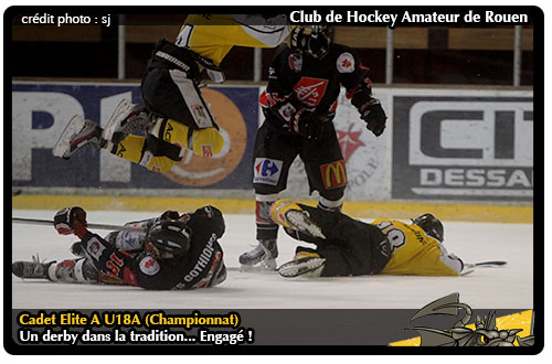 44 confrontations dans l'histoire du championnat Cadet Elite A entre Rouen et Amiens, 21 victoires pour les uns, 21 pour les autres et deux matchs nul. Nul doute que l'éventuelle prochaine confrontation entre les deux éternels rivaux sera d'un tout autre calibre, si le « rendez-vous amoureux » se faisait au gré des résultats des uns et des autres, il serait programmé à l'occasion d'une finale ou d'un match pour la 3ème place du championnat de France U18 Elite A, version 2013-2014. On en salive d'avance du côté de la Normandie et de la Picardie.