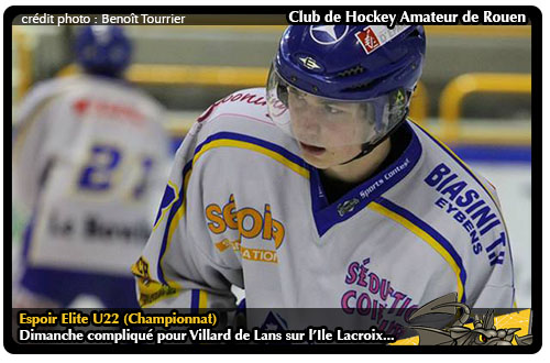Duel des extrêmes pour les Espoirs Rouennais à l'occasion de la 18ème journée de Championnat à disputer face à la lanterne rouge du championnat : Villard de Lans. Un duel somme toute déparaillé entre un leader rouennais en lice pour terminer à la première place de la saison régulière et une équipe de Villard aux résultats en déliquescence avec un bilan de deux victoires pour seize défaites. Pire pour les Isérois, les Dragons auront eu la « délicate » attention d'aligner leur équipe au complet pour l'occasion. Une partie difficile en perspective pour les joueurs de Daniel Sedlak qui auront toutes les peines du monde pour contenir des Dragons désireux de bien faire à trois matchs de la fin de la saison régulière.
