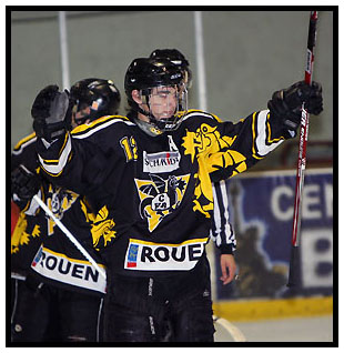 Après s'être incliné face aux Cadets de Gap la semaine dernière en fusillade (2-1), les jeunes rouennais, au terme d'un match rocambolesque, auront du se résoudre à s'incliner 7-6 face à leurs homologues du Mont-Blanc. Pourtant, pour les porteurs du flambeau jaune et noir, les affaires débutaient en toute sérénité sur le glaçon de la patinoire de Saint-Gervais. En effet, au moment de rentrer au vestiaire à la fin de la première période, le Dragon et sa jeune troupe menaient 2 buts à 0. Mise sur orbite par Jason Lorcher (06'37) la fusée jaune et noire tournait avec volupté pendant vingt minutes autour de son adversaire en ajoutant un deuxième but à l'approche des cinq dernières minutes par l'intermédiaire de Kévin Beziau (14'02) Si Arthur Coulon pour le Mont-Blanc profitait d'un quatre contre quatre pour ramener la marque à 2-1, les rouennais n'en avaient cure, le chasseur de filet jaune et noir, Robin Gaborit passant par là pour mettre tout le monde d'accord à 3-1 en avantage numérique (30'55) Toutefois, passée la mi-match, une pluie de météorites venaient perturber la trajectoire jusqu'alors parfaite du propulseur normand. Sans parler d'explosion en plein vol, il n'en restait pas moins que la carlingue défensive rouennaise, maculée d'impacts, se fissurait peu à peu. Relançée par Morgan Vialle (31'13) que l'on retrouvera un peu plus tard pour le doublé, la formation du Mont-Blanc harcelait de plus en plus son homologue jaune et noire. A tel point que quelques minutes plus, en avantage numérique Patxi Biscard servait la passe décisive à son coéquipier Jocelin Besson pour l'égalisation à 3-3 (33'55)