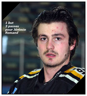 Pour débuter la troisième période, Nicolas Motreff gratifiait le public de l'Ile Lacroix d'un joli "bernard catégorie de luxe" (42'34) ;o) avant de se remettre sous les sunlights. Un pas de danse au milieu de la défensive grenobloise, une passe dans le bon groove au poteau pour Loïc Lampérier et la palette du numéro 9 rouennais violentait le palet pour le rabattre au fond du net (7-1 à 46'05) Deux minutes plus tard le but de la soirée surgissait. Au beau milieu d'une équipe iséroise lymphatique, Loïc Lampérier sortait le palet dans la neutre pour Jérémie Romand. "Kazakh" remettait dans la foulée à son compère devant la cage Loïc. Ce dernier plein de bon sens optait pour la bonne solution au joueur en feu de la partie Mathieu Hottegindre pour le lancer de casquettes célébrant son "hat trick" (8-1 à 48'24) Une dernière offensive rouennaise terminait le travail à 9-1. Après avoir reçu par deux fois la passe, Thomas Dreyfus troquait son costume de "goaléador" pour celui de serveur sur plateau d'argent. Nicolas Motreff profitait de l'offrande et propulsait la rondelle au fond des filets de Normanon rentrée quelques minutes plus tôt (9-1 à 50'33) Les dix dernières minutes de la partie n'offriront guère de spectacle. Julien Delaunay (51'00) et Maxime Durand (54'04) faisaient leur entrée sur le glaçon pour la fin d'une partie qui s'achevait sur la victoire des jeunes rouennais 9-1. Un résultat encourageant avant une semaine chargée pour les cadets qui se déplaceront mercredi et jeudi à Saint-Gervais pour y disputer une solide opposition face à Mont-Blanc 1 et Mont-Blanc 2.