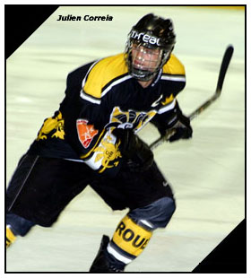 Pour le dernier acte de la partie, les échanges vont tourner une nouvelle fois à l’avantage des Dragons. Pourtant, les joueurs du Mont-Blanc faisaient preuve d’une solide résistance en mettant en action le portier rouennais qui s’en sortait avec la mention très bien face à Jeannin (41’03) puis de la mitaine face à Auvitu (41’08) Même sanction sur l’opportunité alpine suivante avec une intervention fort à propos de Ronan Quemener face à Romain Orset (43’20) Une bonne période pour le Mont-Blanc qui multipliait les occasions sans parvenir pour autant à déjouer le gardien de la maison rouennaise. A force de camper en défensive jaune et noire, les montagnards finissaient par s’épuiser et le Dragon semblait reprendre peu à peu le dessus à l’orée des dix dernières minutes à l’image de cette passe dans la neutre de Thomas Dreyfus pour le break de Jérémy Romand (47’05) Si le Saint-Gervolais manquait de réussite pour l’occasion, il n’en était pas de même pour son compère de bloc Mathieu Hottegindre qui combinait devant la cage avec Nicolas Motreff, ce dernier trouvant le troisième but rouennais sur un trou de souris (3-0 à 53’02) On dit le Montagnard obstiné et il va le prouvé dans les dernières minutes de la partie en ne se résignant pas à la défaite. Pourtant mené 3-0, le gardien du Mont-Blanc était soustrait pour créer le surnombre en fin de match (58’12) Effectivement, le surnombre était crée pour les Alpins mais pas comme ils le souhaitaient. A 6 contre 4, un septième joueur du Mont-Blanc embarquait sur la glace par erreur. Un de trop pour Monsieur Bocquet qui sifflait le surnombre dans les deux dernières minutes de la rencontre. La sanction était inévitable : tir de pénalité. « Rageux » toute la partie, c’est Jérémy Romand qui s’y collait. Cette fois, « Kazakh » ne maugréera pas au moment de retourner sur le banc rouennais. Le rouennais s’élançait pour le tir de fusillade et parvenait à faire franchir au palet la ligne de but pour la quatrième fois de la soirée (59’37), célébrant ainsi la victoire des Dragons sur le score de 4-0
