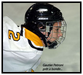 Surpris par un arbitrage juste mais strict, les Cadets pêchaient de la fougue de la jeunesse en s’exposant au courroux du zèbre sifflotant à l’image de Jérémy « Kazakh » Romand renvoyé prématurément au vestiaire pour coup de patin (37’02). Pour autant, loin de troubler la sérénité des Dragons, le jeu d’infériorité numérique leurs réussissaient plutôt bien à tel point que Kévin Igier ajoutait un cinquième but au tableau d’affichage (0-5 à 34’02) lui permettant ainsi de célébrer à sa façon sa réalisation ;o)