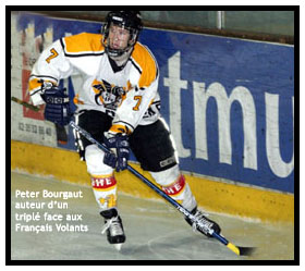 Même si le speaker de la patinoire présentait l’équipe de Rouen comme une invincible armada, nul doute que le nombreux public venu voir la confrontation espérait voir les siens bousculer une équipe rouennaise sans doute un peu trop sûre d’elle. Et pour cause ! Dès la première présence sur le glaçon parisien, l’artillerie rouennaise lançait ses premiers obus par l’intermédiaire de Mathieu Hottegindre qui trouvait sans faille Peter Bourgaut pour un missile en pleine lucarne (0-1 à 00’43) Que demander de mieux pour les Dragons qu’une ouverture du score rapide ! Pourtant, même si les affaires semblaient plutôt bien engagées, un relâchement dans les rangs jaunes et noirs offraient aux franciliens la possibilité de revenir. Même si Peter Bourgaut pour le deuxième but en supériorité numérique (0-2 à 09’47) pensait bien avoir assommer définitivement les Volants, ce sont bien les parisiens qui prenaient la main dans ce tiers. Dominée physiquement par leurs adversaires, la fière embarcation rouennaise se changeait peu à peu en frêle esquif brinquebalée de toute part par les vagues offensives parisiennes à l’image d’Edouard Outin qui ramenait la marque à 1-2 (12’54) avant la première sirène.