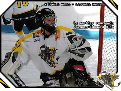 Premier tireur de la série, Harald Creton s'élançait et feintait subtilement le portier basque avant de manquer le cadre. Déjouant le gardien rouennais dans la foulée, l'équipe d'Anglet menait au score 1-0 dans la série. Déjà compliquée la situation des Dragons devenaient bien épineuse alors que Julien Pradera, le gardien basque sortait l'arrêt du siècle face à Johan Saint-André. Afin de rester à la mesure de son opposant, Jacques-Edouard Blin se montrait à son tour vertueux face à l'attaquant basque. Un arrêt ras de glace de la botte qui permettait aux Dragons de continuer de vivre dans cette série d'autant plus que dans la foulée, Alexandre Chergui, sur de son geste, ne tremblait pas au moment de ramener le score à 1-1. Se mettant au diapason en sortant l'arrêt parfait, le cerbère jaune et noir fermera la porte de la maison jusqu'à la fin de la série. Chez les Dragons, le palet de la victoire était placé dans la palette du défenseur d'Aurélien Dorey. En effet, pour le tir au but « mort subite », le défenseur rouennais sortait sa « special magic » en fixant le gardien avant de glisser le palet entre les jambières du gardien. Victoire 2 tirs à but à 1 pour les Dragons et une troisième victoire dans cette Poule Elite B qui leur permet de grimper à la troisième place de la poule à 2 points d'Anglet avec néanmoins 3 matchs en plus.