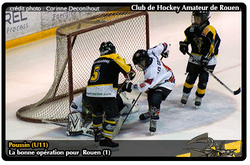 Pour les poussins rouennais, le week-end dernier aura été des plus excitants notamment pour l'équipe première jaune et noire qui aura fait une bien jolie opération que ce soit dans le cadre des play-offs du championnat samedi face à Amiens 1 ou en demi-finale de l'interconférence face à Caen 1.