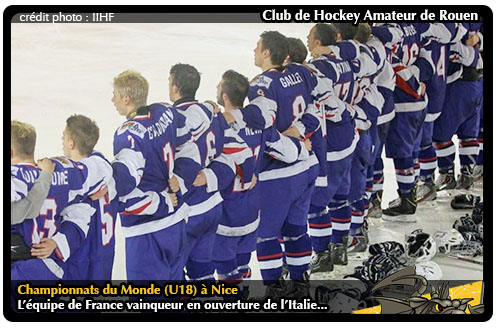 En lice pour son premier match aux championnats du monde U18, l'équipe de France qui compte dans ses rangs trois rouennais (Vincent Nesa, Jérémy Delbaere et Quentin Papillon) n'aura pas manqué son rendez-vous à Nice en dépit de quelques frayeurs en début de match face à l'Italie.