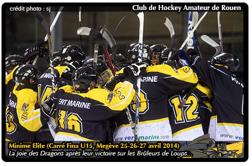 De toutes les victoires, celles obtenues avec le cœur sont sans doute les plus savoureuses. Force est de constater que face à Grenoble, le cœur du Dragon aura vibré bien fort pour des rouennais euphoriques le temps de cinq minutes sur la fin de la rencontre en ramenant le score de 2-4 à 4-4 avant de prendre la main à 5-4 pour finir le travail en cage vide à 6-4. Une victoire renversante, qui ne devra, néanmoins pas faire oublier aux jeunes rouennais la finalité du week-end avec une « finale » à disputer face à Hockey 74 ce jour pour tenter de se parer d'or à l'issue du dernier match de ce carré final U15 disputé à Megève.