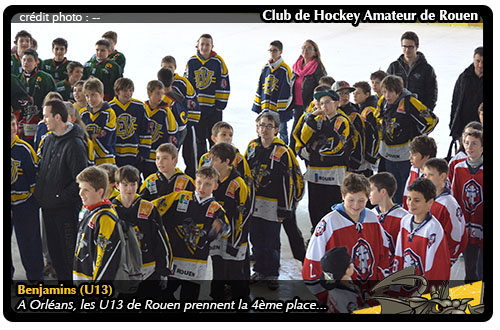 En lice au tournoi d'Orléans à la patinoire du complexe du Baron, les Benjamins Rouennais en s'inclinant pour le match pour la troisième place, décroche néanmoins une encourageante quatrième place au terme de deux jours de compétitions endiablés.