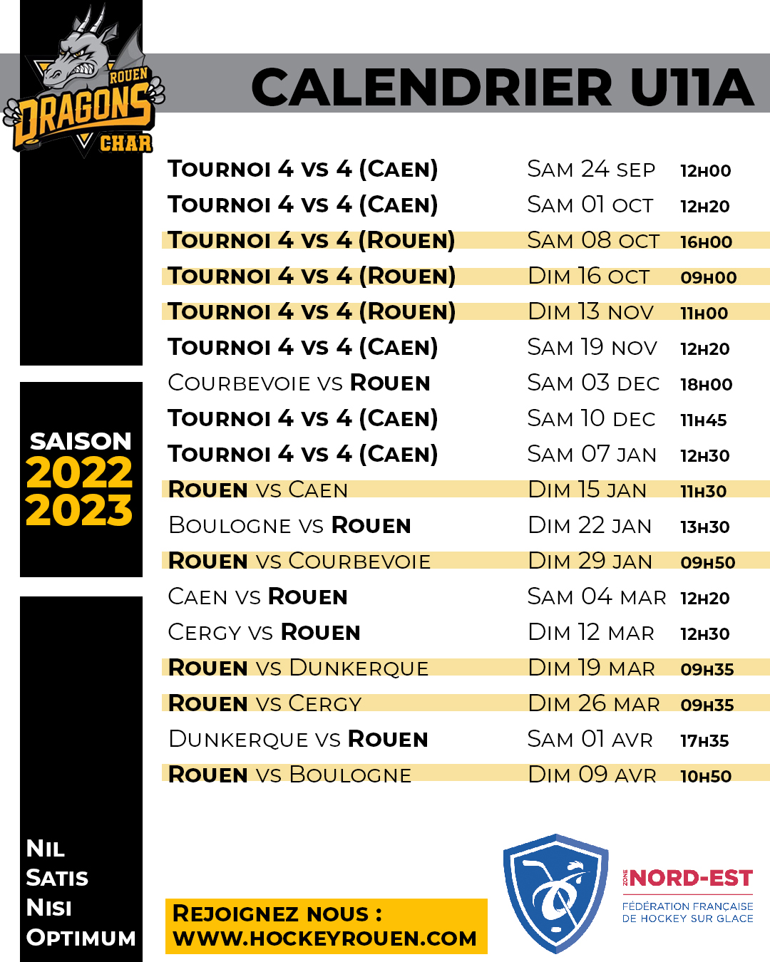 84 matchs joués pour cette édition 2023 du Tournoi U11 « Frédéric Robinet » pour les 16 équipes participantes qui auront vu en finale les Dragons de Rouen Noir s'incliner face aux Gothiques d'Amiens Noir sur le score de 3 à 2. Compiègne Bleu chaparde le match pour la 3ème en s'imposant 7-6 face à Epinal. Rouen 2012 & Rouen 2013 terminent respectivement à la 12ème & à la 16ème place. Félicitations à l'ensemble des participants, joueurs, parents, bénévoles, supporters pour leur investissement sans faille pour faire de ce tournoi une belle réussite glacée.